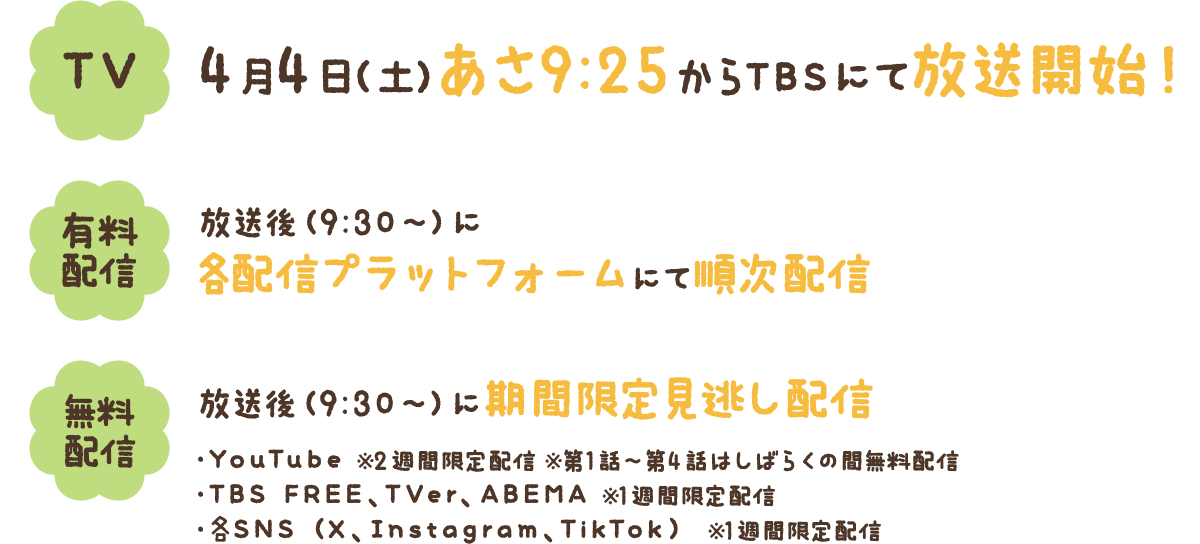 4月4日(土)あさ9:25からTBSにて放送開始!